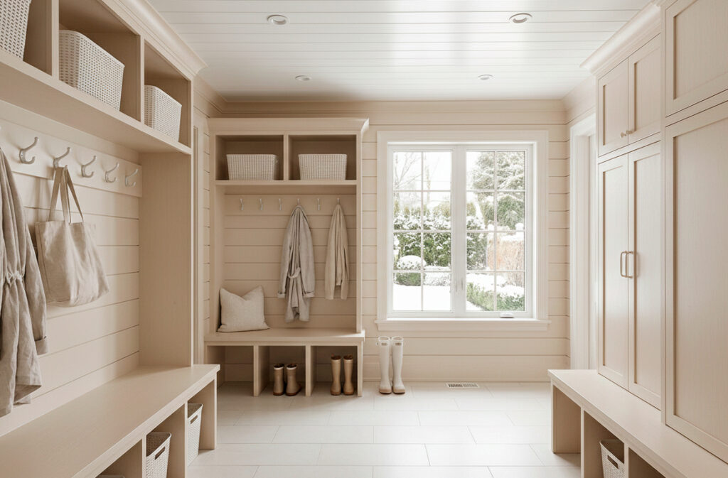 Our designers will help you choose the best materials that coordinate with the design of your home. decorative hooks and benches with adjoining cabinets for coats, whatever design plan you choose for your mudroom, together we will create an affordable mudroom that allows you and your family to come and go with ease anytime of the year. call now